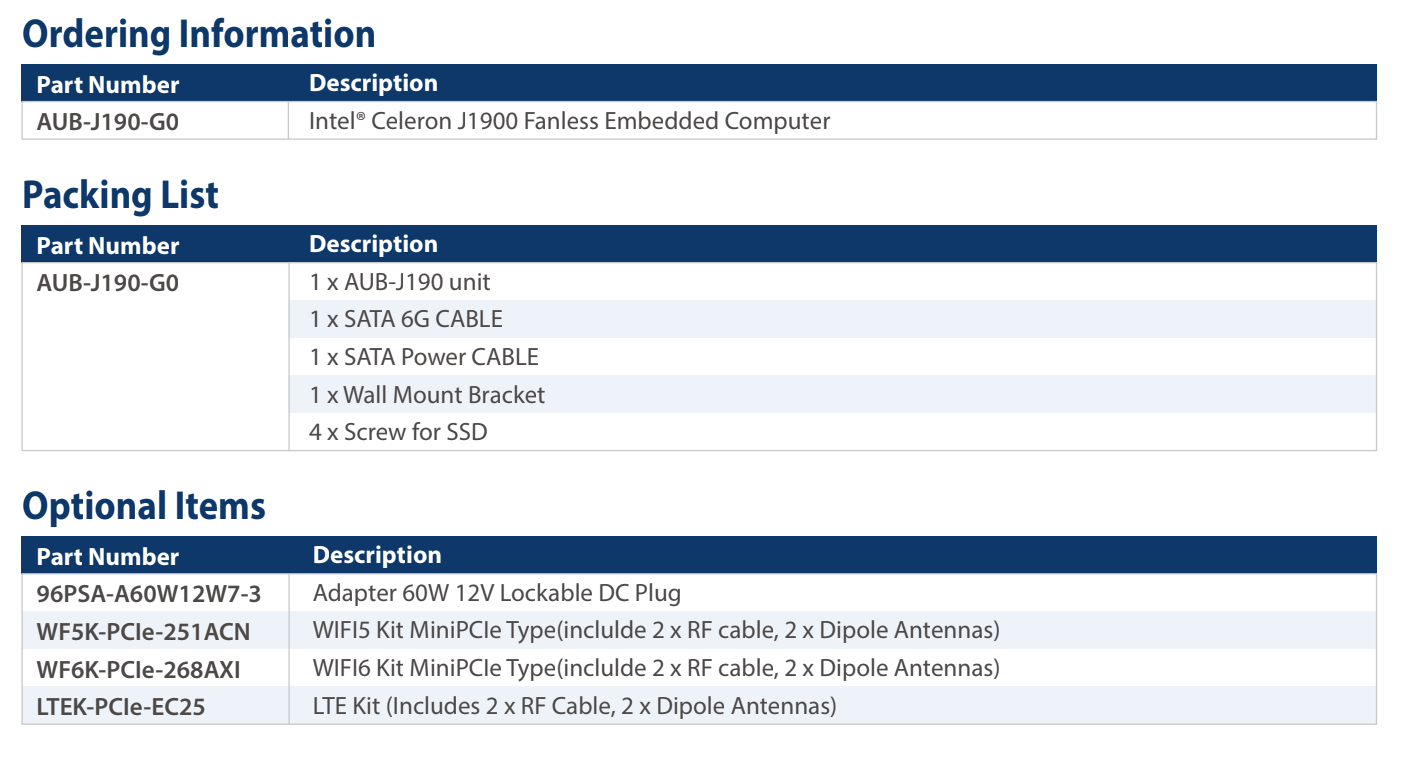 AUB-J190-G0 無風扇嵌入式系統