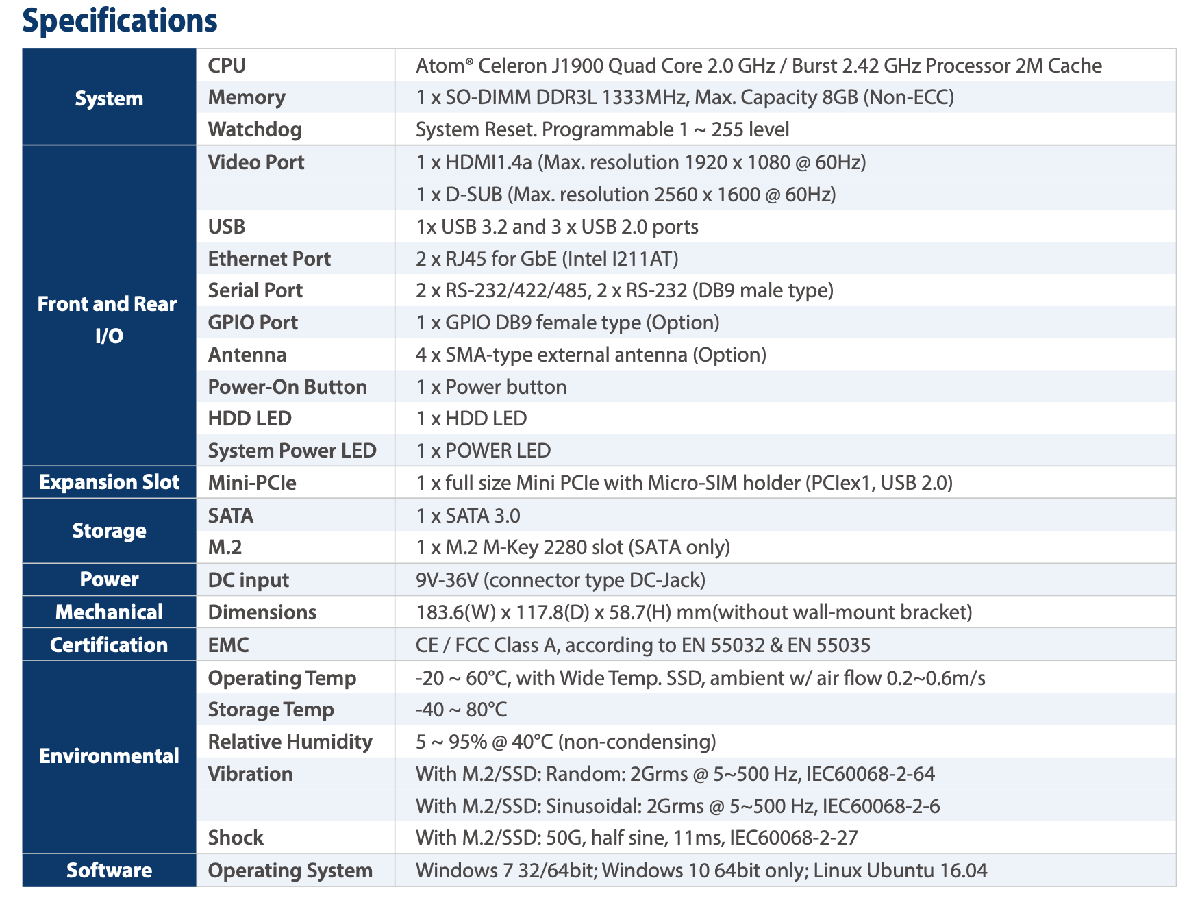 • Onboard Intel ® Celeron J1900 Quad Core 2.42 GHz CPU Dual Independent