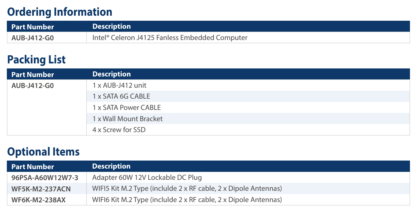 • Onboard Intel ® Celeron J4125 Quad Core 2.7 GHz CPU