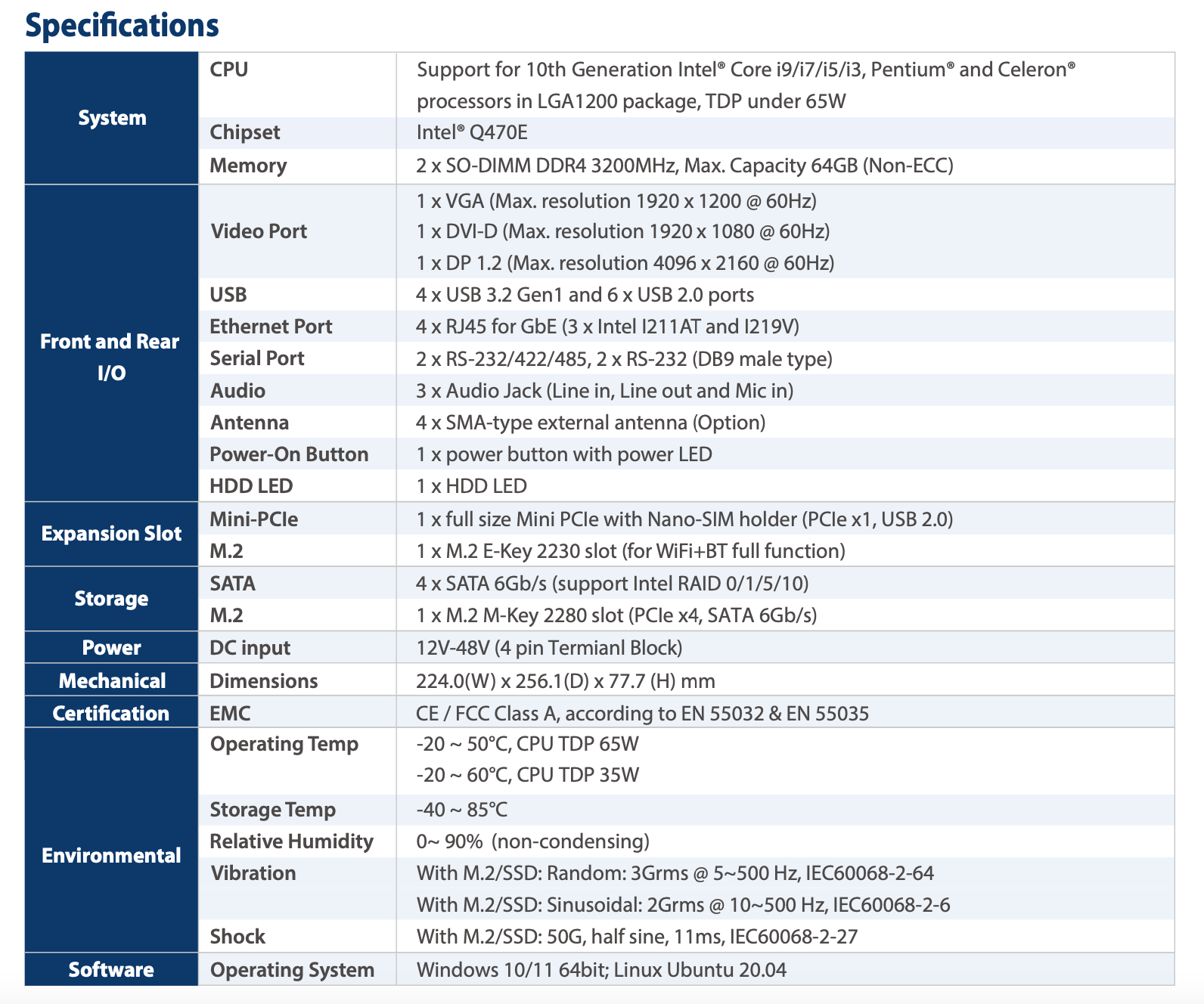 - 2 x SO-DIMM DDR4 up to 64GB