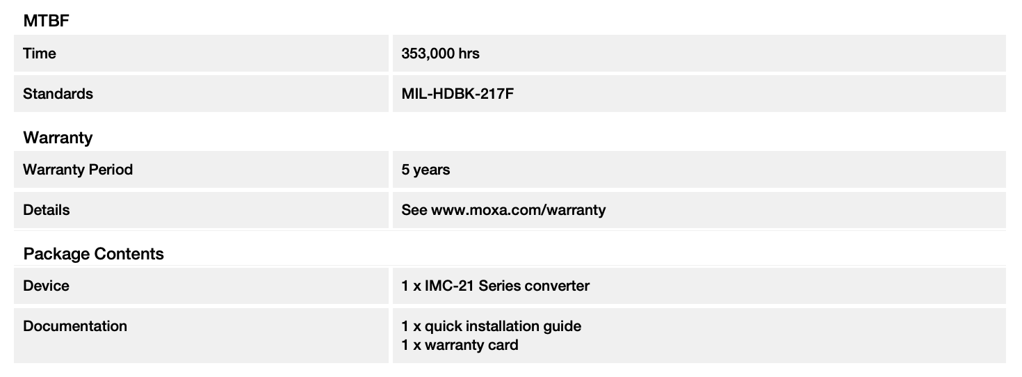The IMC-21 industrial media converters are entry-level 10/100BaseT(X)-to-100BaseFX media converters designed to provide reliable and stable operation in harsh industrial environments. The converters are a cost-effective solution that run on either a 12 or 48 VDC power input and can operate reliably in temperatures ranging from -10 to 60°C. The rugged hardware design ensures that your Ethernet equipment can withstand demanding industrial conditions. The IMC-21 converters are easy to mount on a DIN rail or in distribution boxes.
