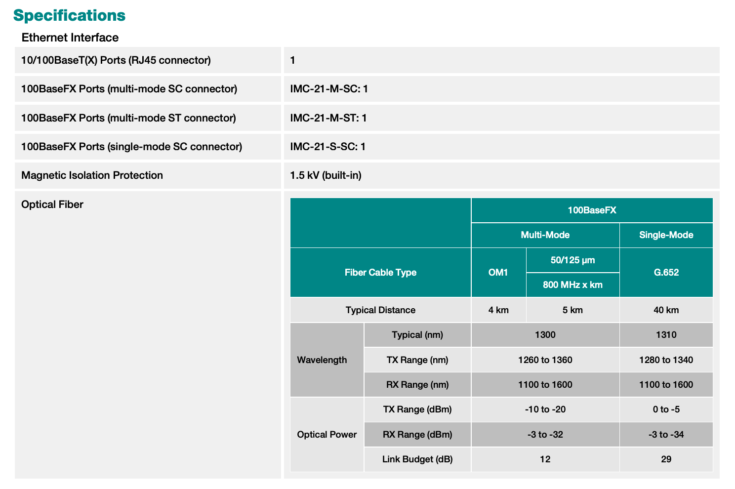 - Multi-mode or single-mode, with SC or ST fiber connector