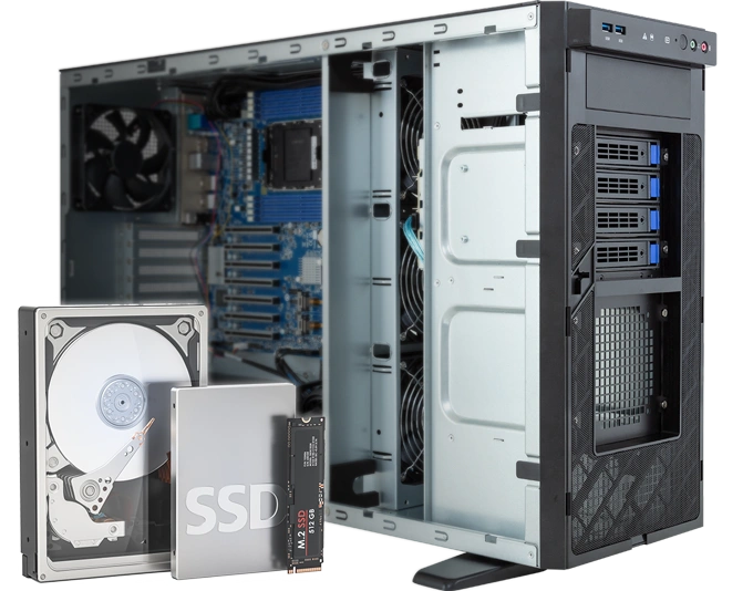 - Optional 4 x 3.5” / 2.5” SATA hot-swap HDD/SSD bays